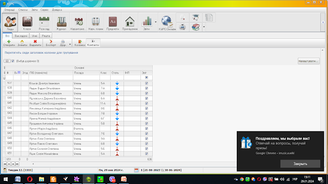 В системі існує 4 базові сутності, на які вона спирається : класи, предмети, кабінети, люди. Ці сутності представлені на 4 закладках. Кожна закладка має вигляд таблиці с даними.